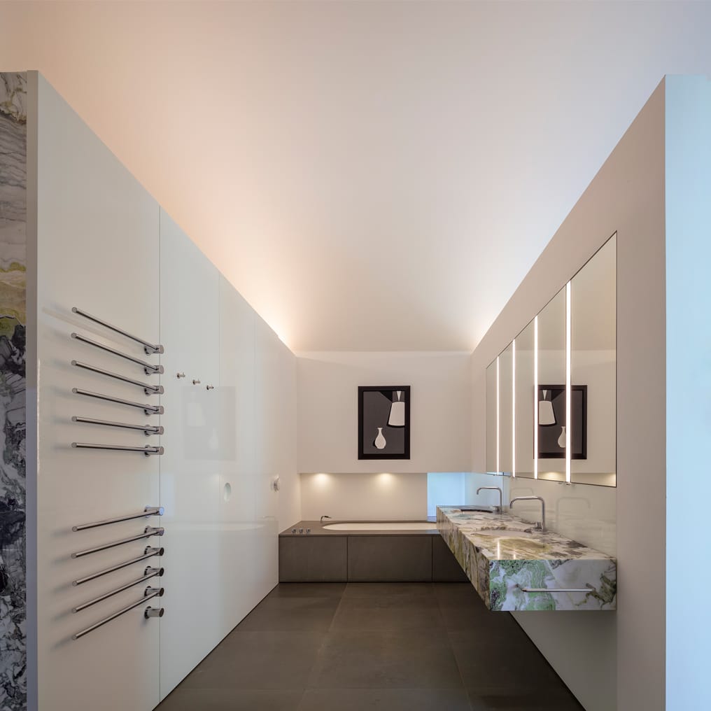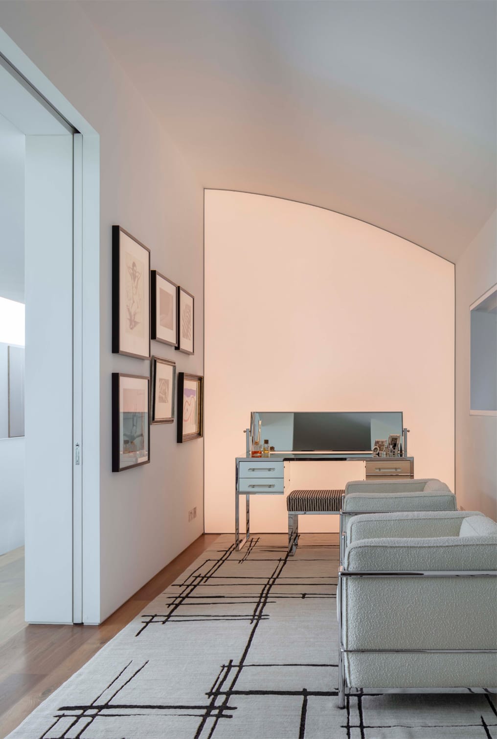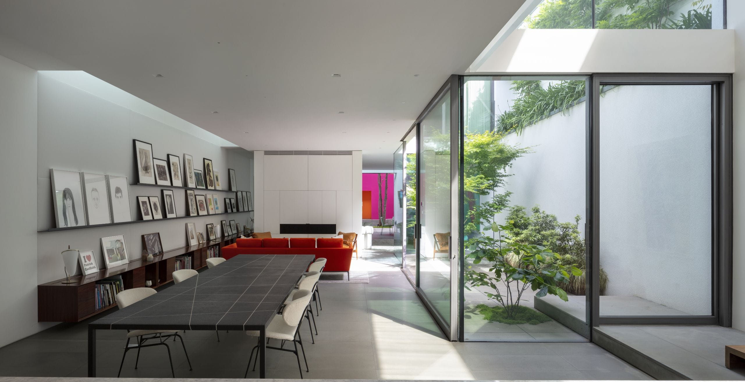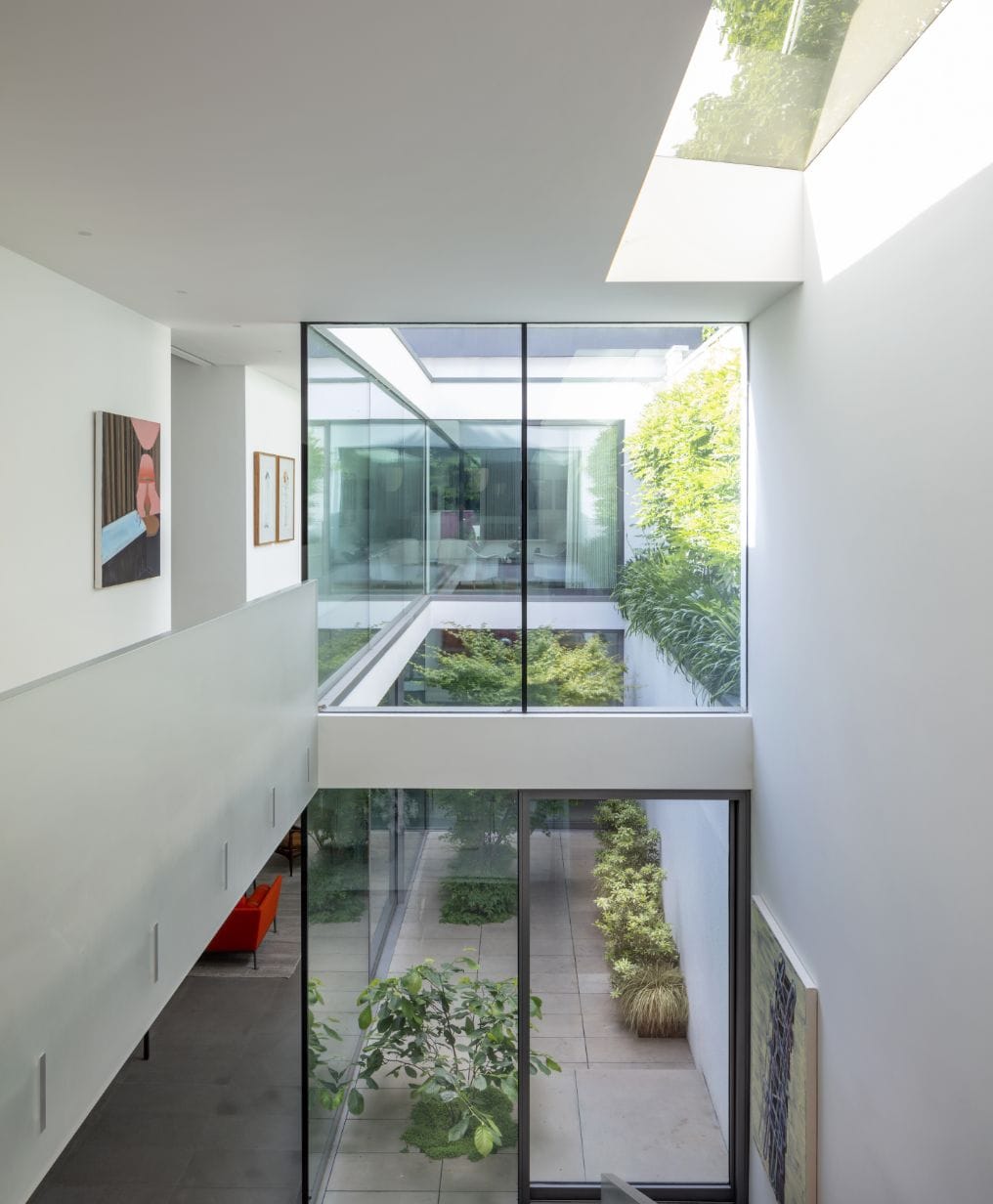 A new build house in Holland Park on two levels and arranged around two courtyards allowing daylight to penetrate the 250m/sq floor plate. The original house was completed by Seth Stein Architects in 2006.