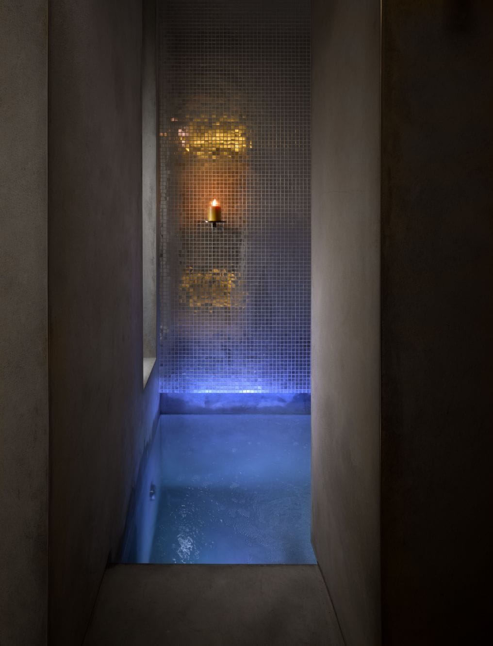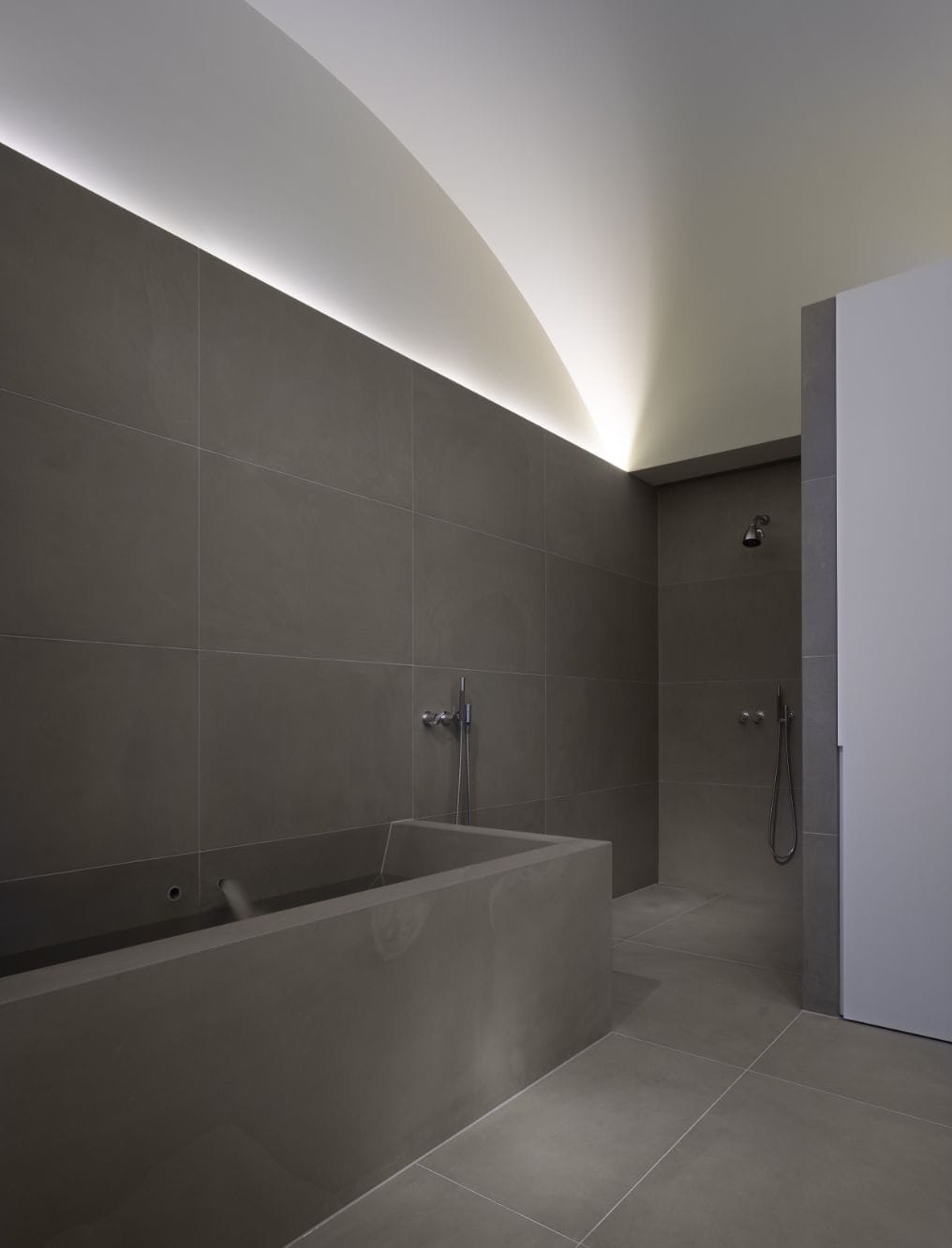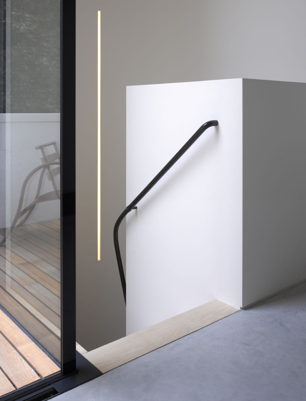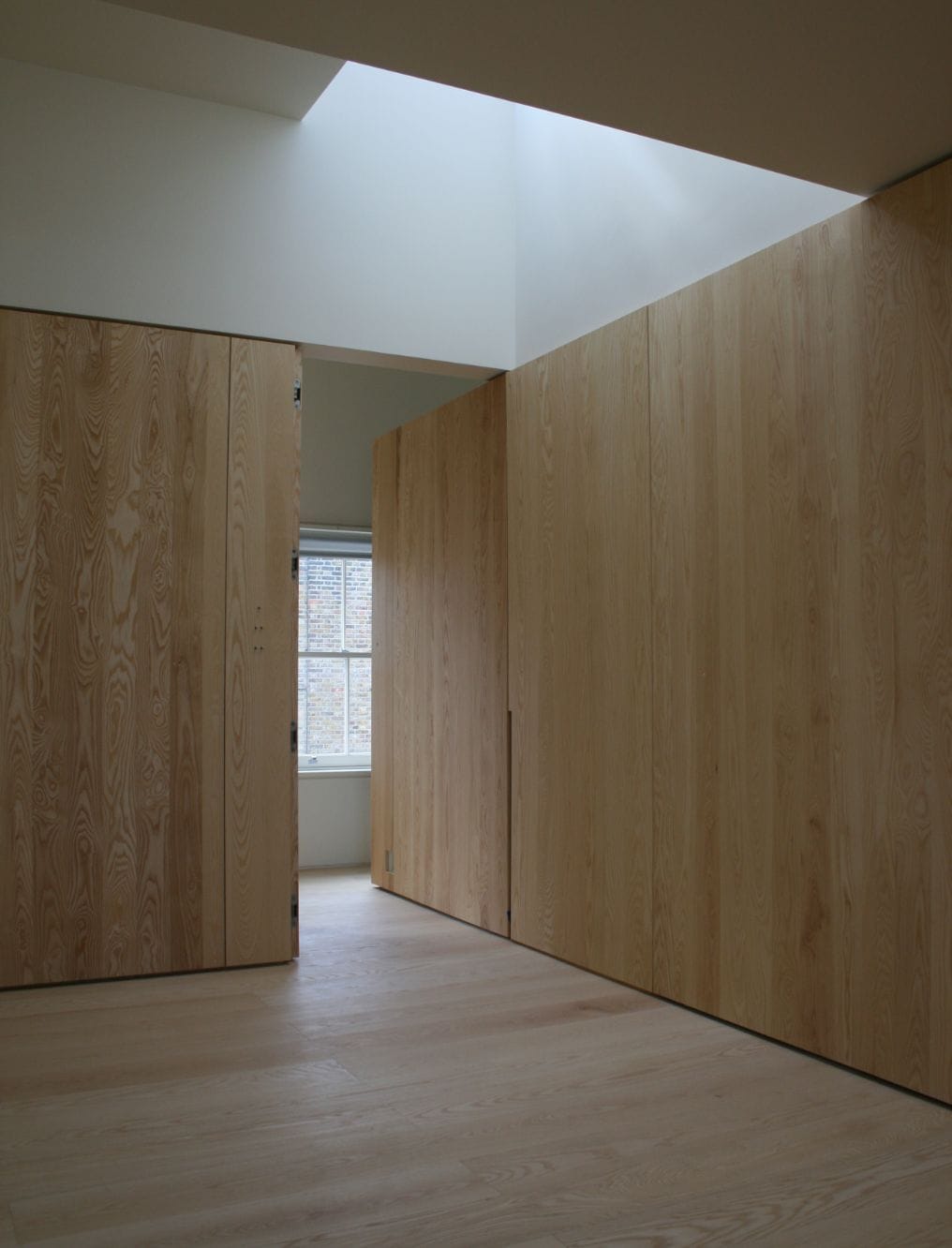 Behind a conventional terraced street elevation the plan extends 26m in depth with accommodation arranged around an internal courtyard and terraces.
