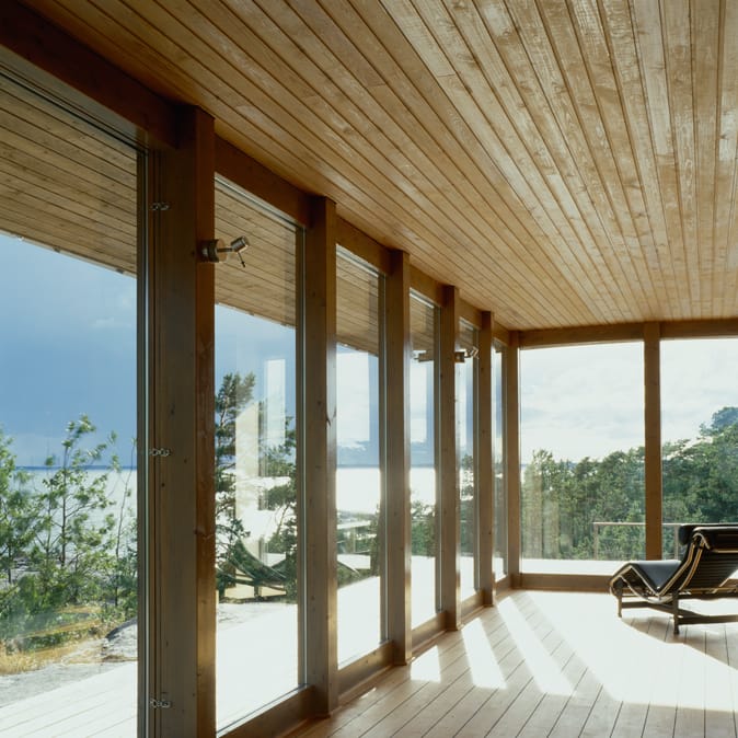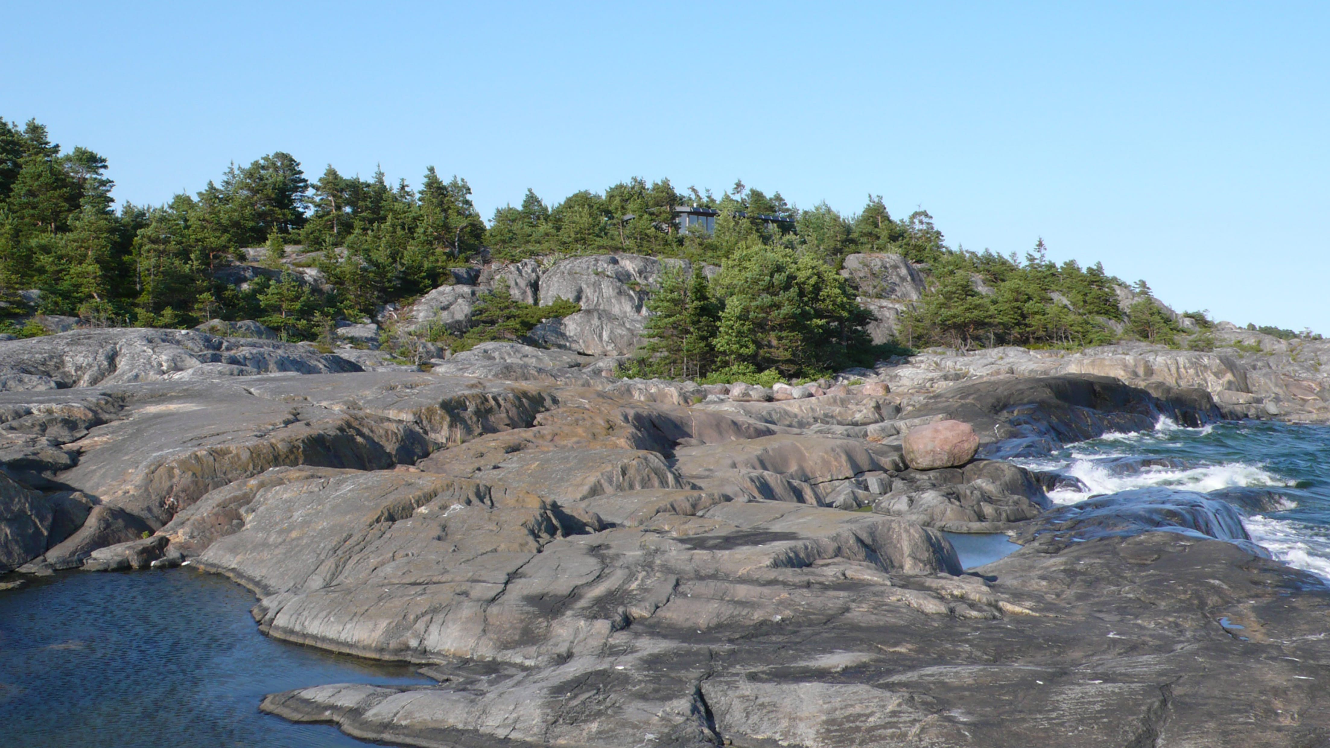 A new build summer house prefabricated during the winter season and erected during the summer months located at the highest point (15m) of a 2.5 hectare island in the Helsinki archipelago. The plan is based on the module of a standard photo-voltaic panel, 12 of which provide sufficient energy during the daylight seasons.